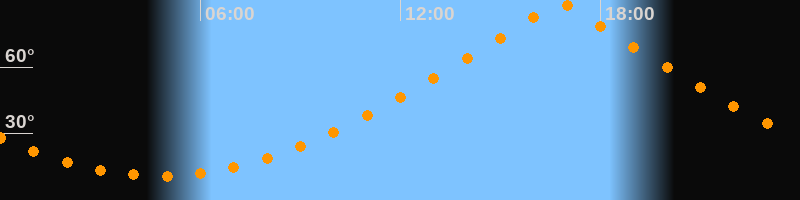 | Höchster Stand (Kulmination) | 16:46 Uhr (h = 89,5°) |