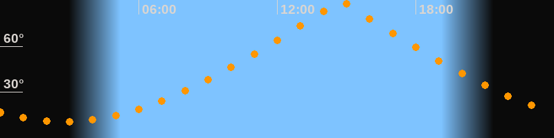 | Höchster Stand (Kulmination) | 14:44 Uhr (h = 89,5°) |