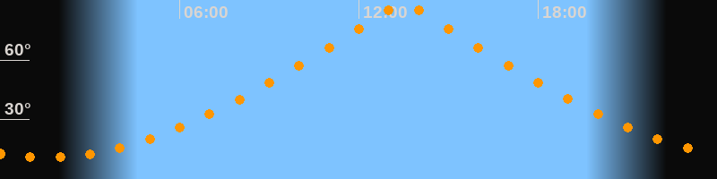 | Höchster Stand (Kulmination) | 13:30 Uhr (h = 89,5°) |