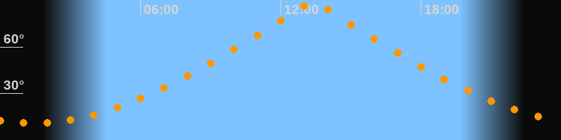 | Höchster Stand (Kulmination) | 13:22 Uhr (h = 89,5°) |