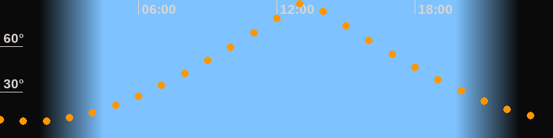 | Höchster Stand (Kulmination) | 13:14 Uhr (h = 89,5°) |