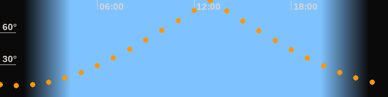 | Höchster Stand (Kulmination) | 12:58 Uhr (h = 89,5°) |