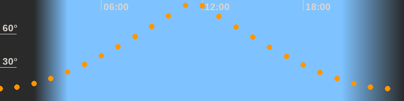 | Höchster Stand (Kulmination) | 11:28 Uhr (h = 89,5°) |