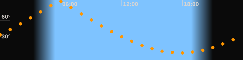 | Höchster Stand (Kulmination) | 05:50 Uhr (h = 89,5°) |