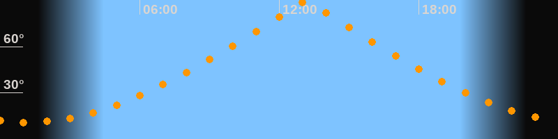 | Höchster Stand (Kulmination) | 13:08 Uhr (h = 89,5°) |