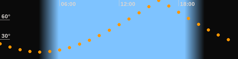| Höchster Stand (Kulmination) | 16:02 Uhr (h = 89,5°) |