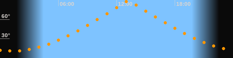 | Höchster Stand (Kulmination) | 13:13 Uhr (h = 89,5°) |