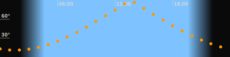 | Höchster Stand (Kulmination) | 13:37 Uhr (h = 89,5°) |