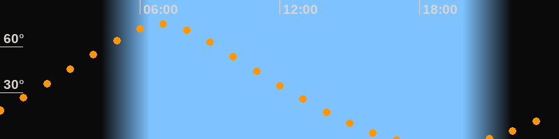 | Höchster Stand (Kulmination) | 06:56 Uhr (h = 74,6°) |