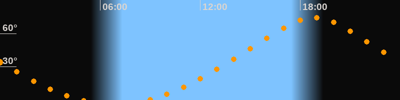 | Höchster Stand (Kulmination) | 18:49 Uhr (h = 74,6°) |