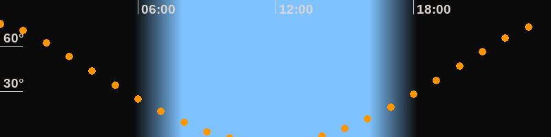 | Aufgang | 13:40 Uhr im Norden (αAz = 22,4°) |