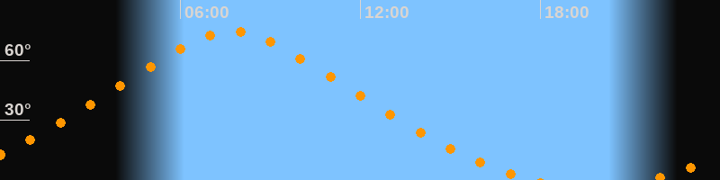 | Höchster Stand (Kulmination) | 07:43 Uhr (h = 74,6°) |