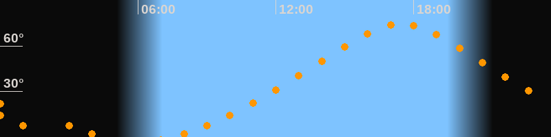| Höchster Stand (Kulmination) | 17:28 Uhr (h = 74,6°) |
