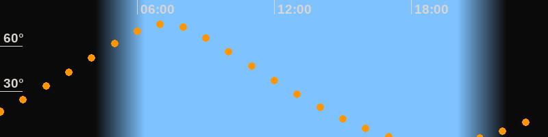 | Höchster Stand (Kulmination) | 07:11 Uhr (h = 74,6°) |