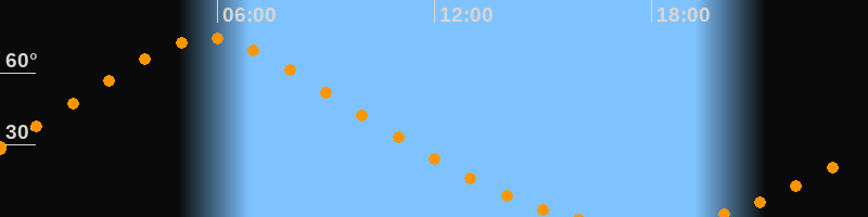 | Höchster Stand (Kulmination) | 05:45 Uhr (h = 74,6°) |