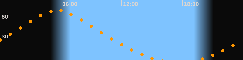 | Höchster Stand (Kulmination) | 05:38 Uhr (h = 74,6°) |