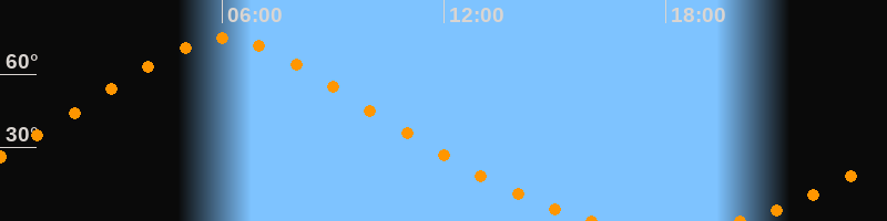 | Höchster Stand (Kulmination) | 06:02 Uhr (h = 74,6°) |