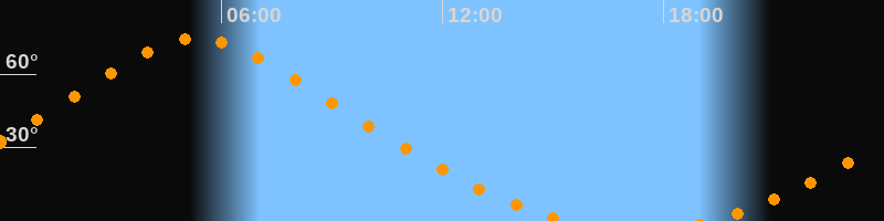 | Aufgang | 19:10 Uhr im Norden (αAz = 22,4°) |