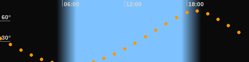 | Höchster Stand (Kulmination) | 18:51 Uhr (h = 74,6°) |