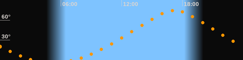 | Höchster Stand (Kulmination) | 17:14 Uhr (h = 74,6°) |