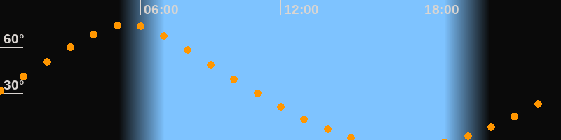 | Höchster Stand (Kulmination) | 05:25 Uhr (h = 74,6°) |