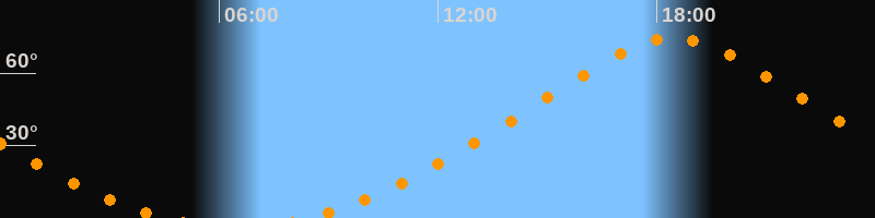 | Höchster Stand (Kulmination) | 18:28 Uhr (h = 74,6°) |