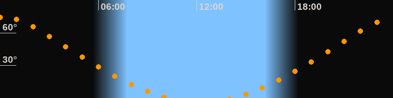 | Höchster Stand (Kulmination) | 00:12 Uhr (h = 74,6°) |
