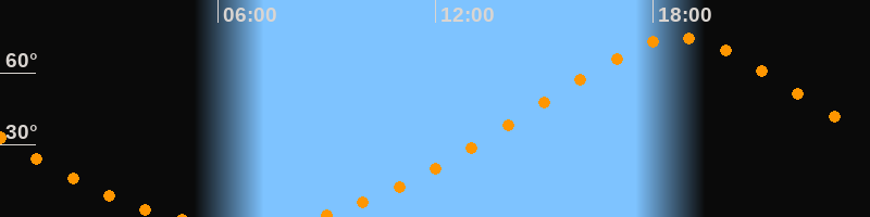 | Höchster Stand (Kulmination) | 18:42 Uhr (h = 74,6°) |