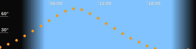 | Höchster Stand (Kulmination) | 09:14 Uhr (h = 74,6°) |