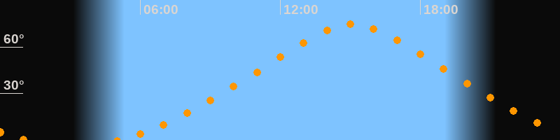 | Höchster Stand (Kulmination) | 15:05 Uhr (h = 74,6°) |