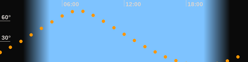 | Höchster Stand (Kulmination) | 07:33 Uhr (h = 74,6°) |
