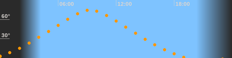 | Höchster Stand (Kulmination) | 09:20 Uhr (h = 74,6°) |