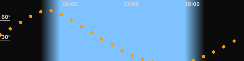 | Aufgang | 18:30 Uhr im Norden (αAz = 22,4°) |