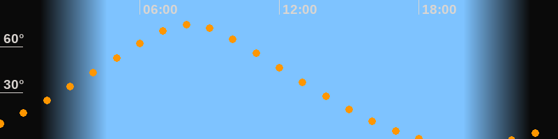 | Höchster Stand (Kulmination) | 08:08 Uhr (h = 74,6°) |