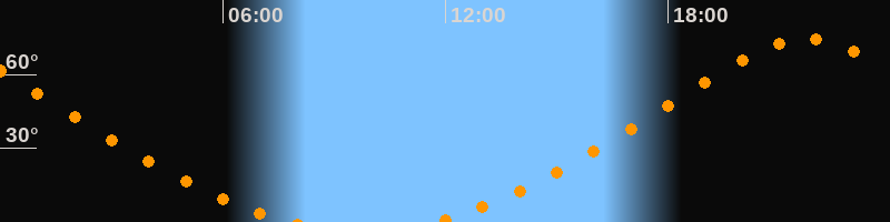 | Höchster Stand (Kulmination) | 21:43 Uhr (h = 74,6°) |