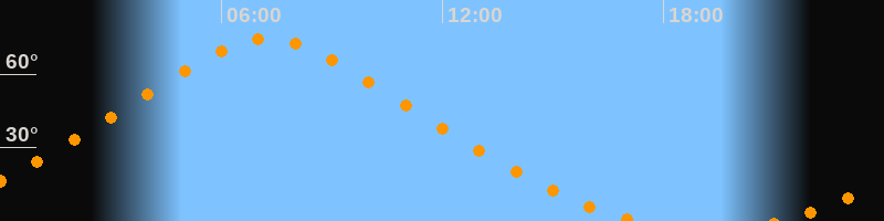 | Höchster Stand (Kulmination) | 07:14 Uhr (h = 74,6°) |