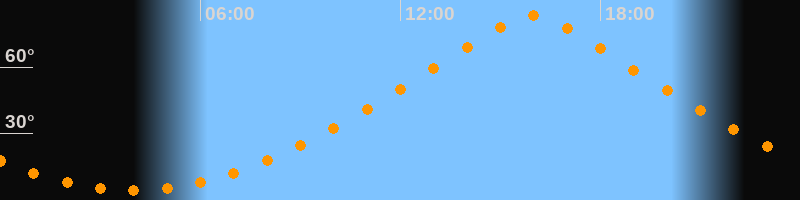 | Höchster Stand (Kulmination) | 15:57 Uhr (h = 83,1°) |