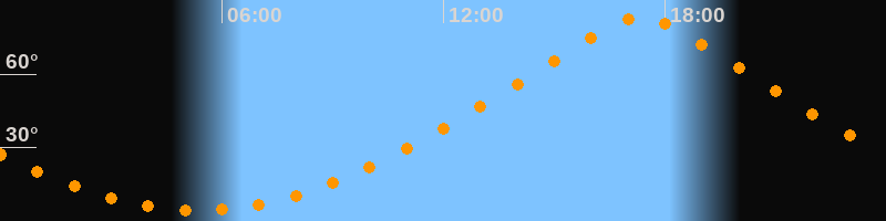 | Höchster Stand (Kulmination) | 17:20 Uhr (h = 83,1°) |