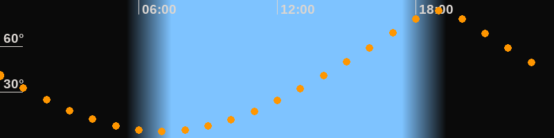 | Höchster Stand (Kulmination) | 18:59 Uhr (h = 83,1°) |