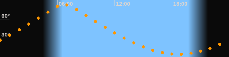 | Höchster Stand (Kulmination) | 06:42 Uhr (h = 83,1°) |