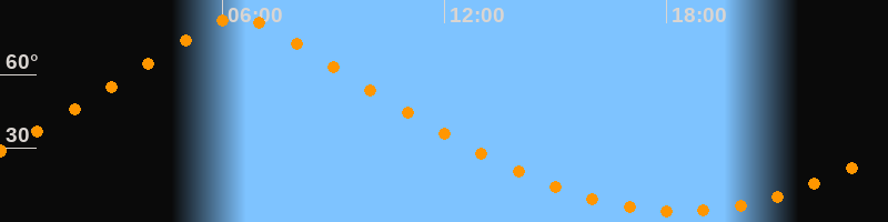 | Höchster Stand (Kulmination) | 06:25 Uhr (h = 83,1°) |