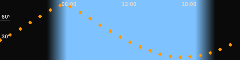 | Höchster Stand (Kulmination) | 06:18 Uhr (h = 83,1°) |
