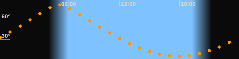 | Höchster Stand (Kulmination) | 05:55 Uhr (h = 83,1°) |