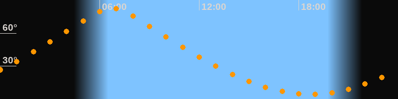 | Höchster Stand (Kulmination) | 06:44 Uhr (h = 83,1°) |