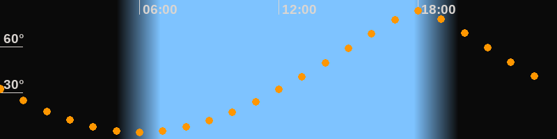 | Höchster Stand (Kulmination) | 18:00 Uhr (h = 83,1°) |