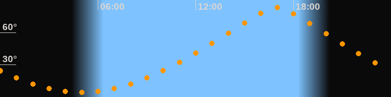 | Höchster Stand (Kulmination) | 16:57 Uhr (h = 83,1°) |