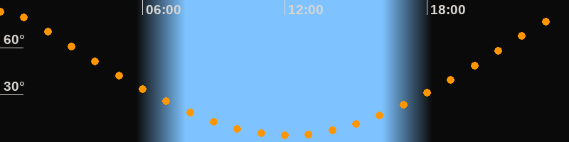 | Höchster Stand (Kulmination) | 00:07 Uhr (h = 83,1°) |