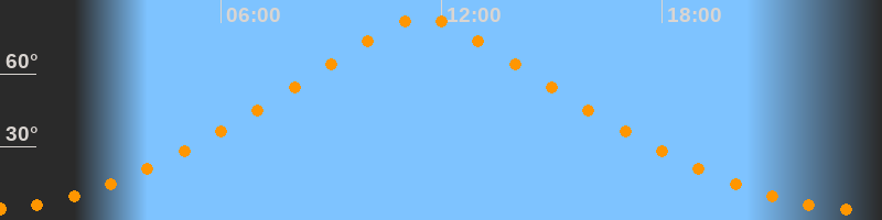 | Höchster Stand (Kulmination) | 11:30 Uhr (h = 83,1°) |