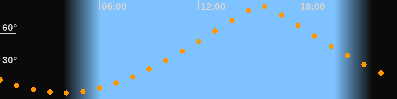 | Höchster Stand (Kulmination) | 15:45 Uhr (h = 84,5°) |