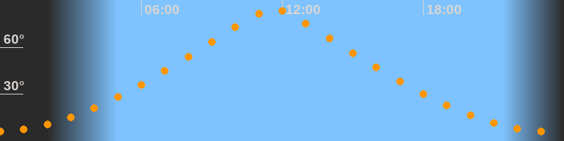 | Höchster Stand (Kulmination) | 11:38 Uhr (h = 84,5°) |